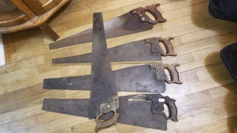 Title (ebay affiliate link): Lot Of 5 Vintage Cross Cut Hand Saws Disston Superior Warrenty Hand Crafted