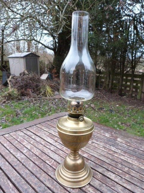 LOVELY ANTIQUE VINTAGE BRASS & GLASS OIL LAMP.