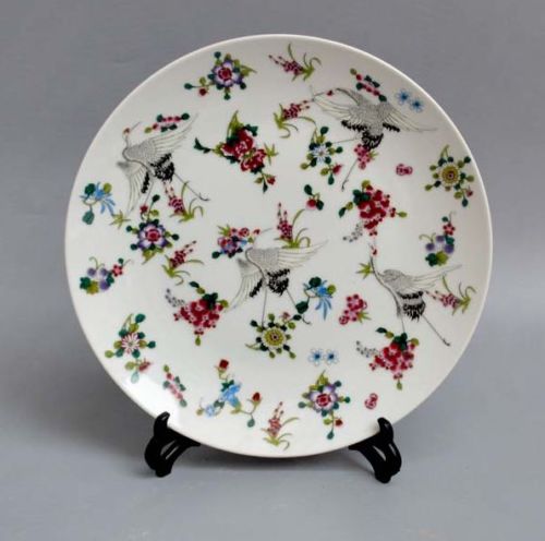 Title (ebay affiliate link): BEAUTIFUL CHINESE JINGDEZHEN PORCELAIN HAND PAINTED CRANE FLOWERS PLATE