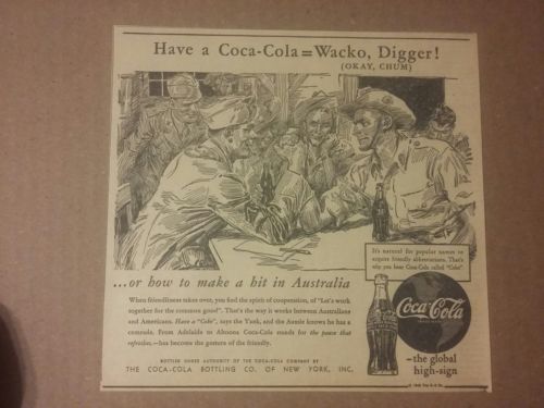 1943 Coca-Cola Coke Ad Australia Global High Sign Wacko Digger
