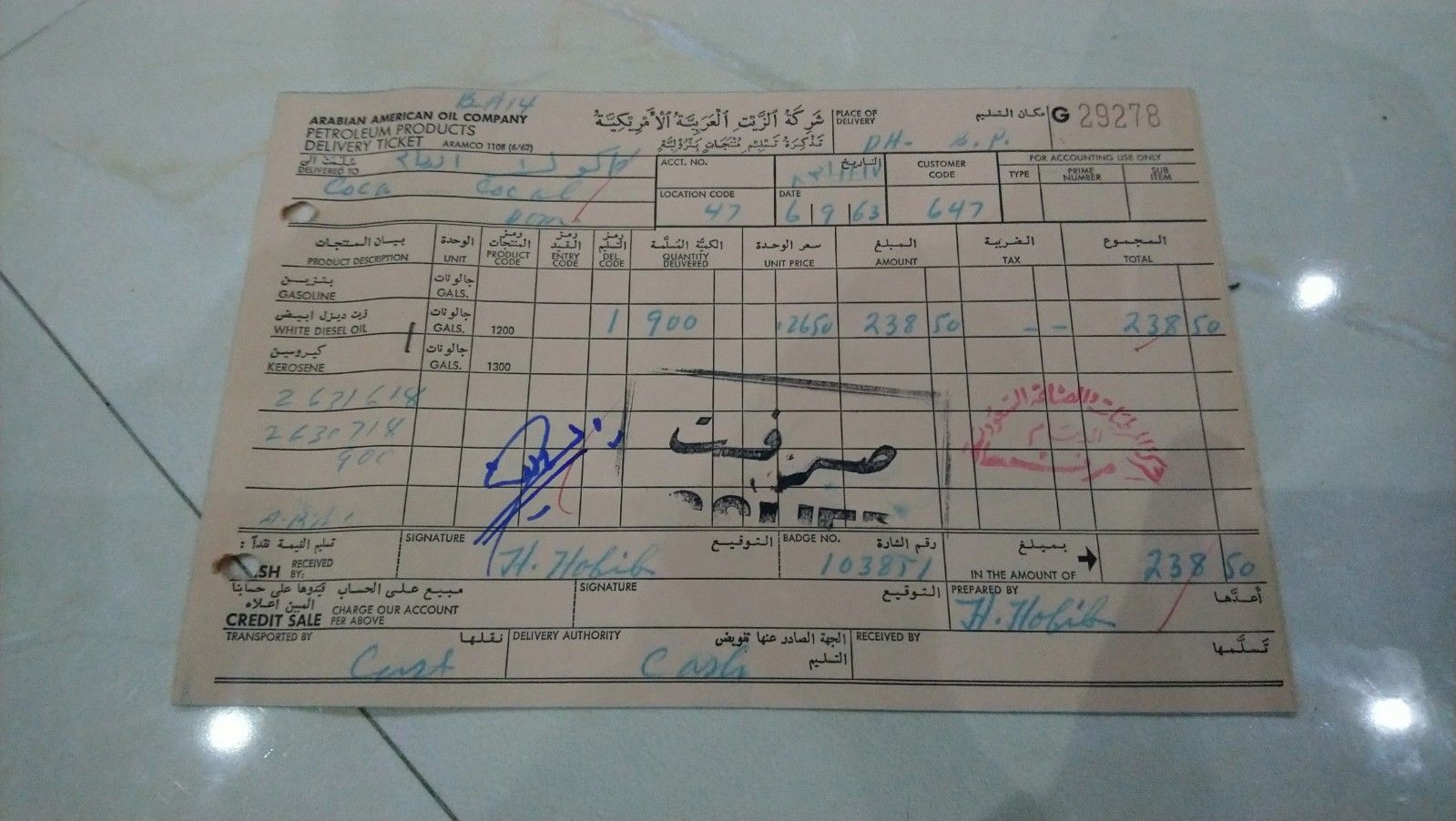 Arabia american oil company Delivery of petroleum products to coca cola Company