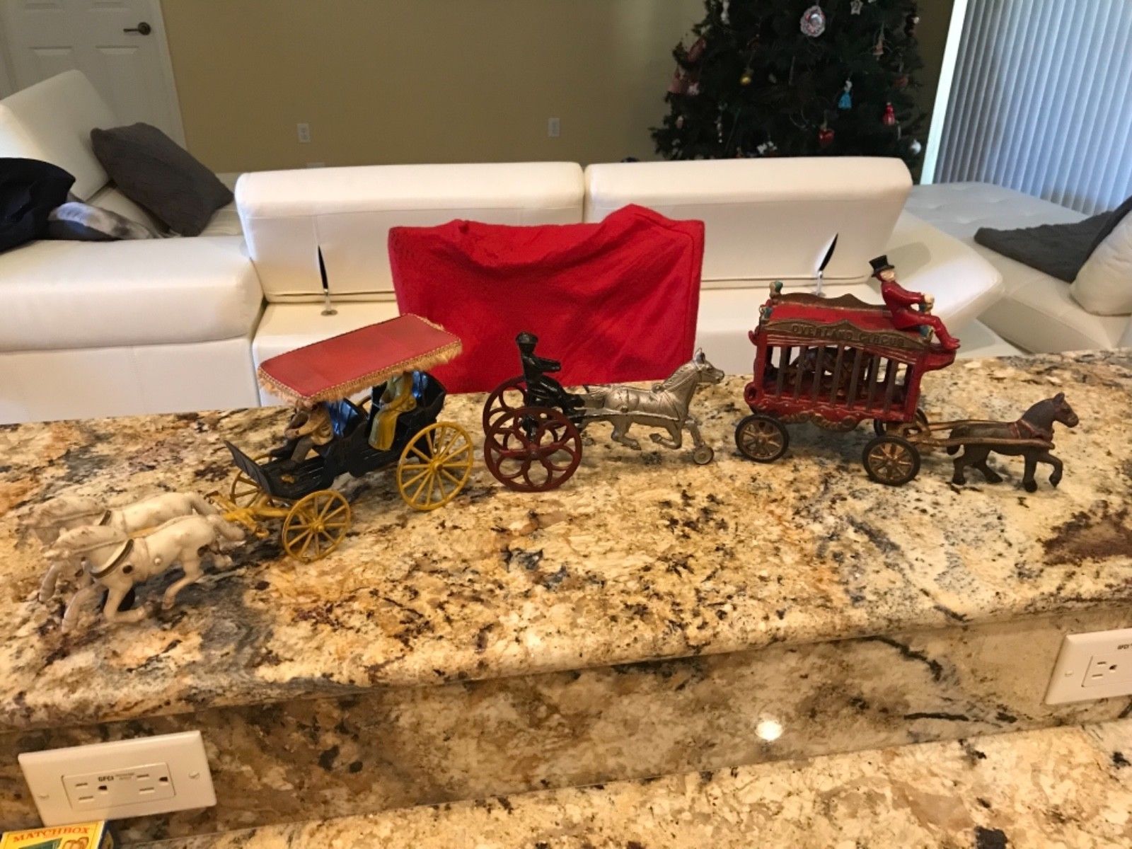 3 RARE 1920s CAST IRON HORSE DRAWN TOYS OVERLAND CIRCUS COVERED SURRY & SULKY