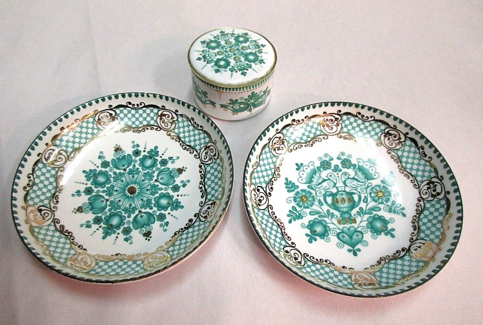 Title (ebay affiliate link): Lot 3 Pieces Enamel Austrian ARTA Round Patch Box & 2 Round Dishses
