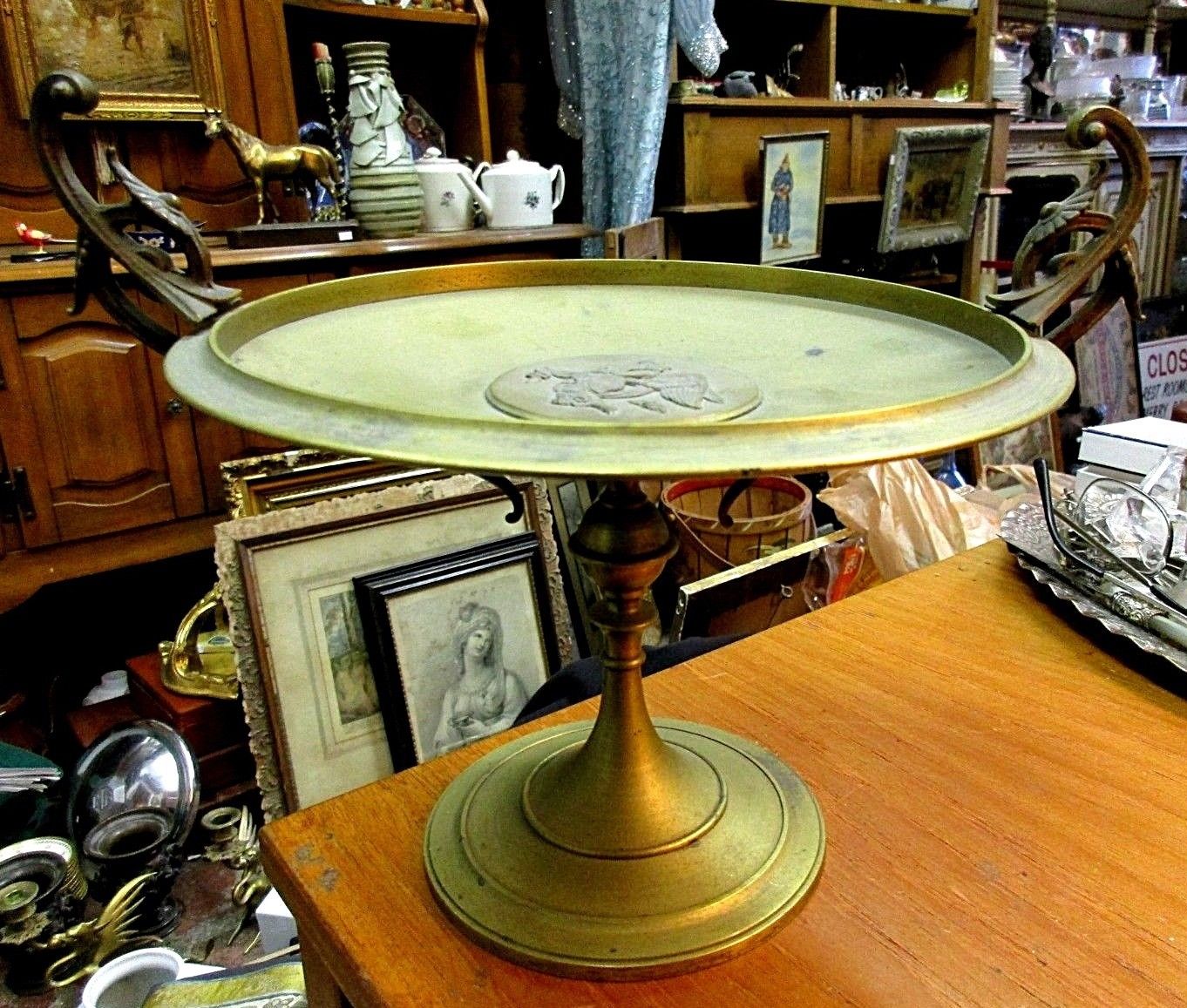 Antique Grand Tour Gilt Bronze Tazza Compote w Winged Angel