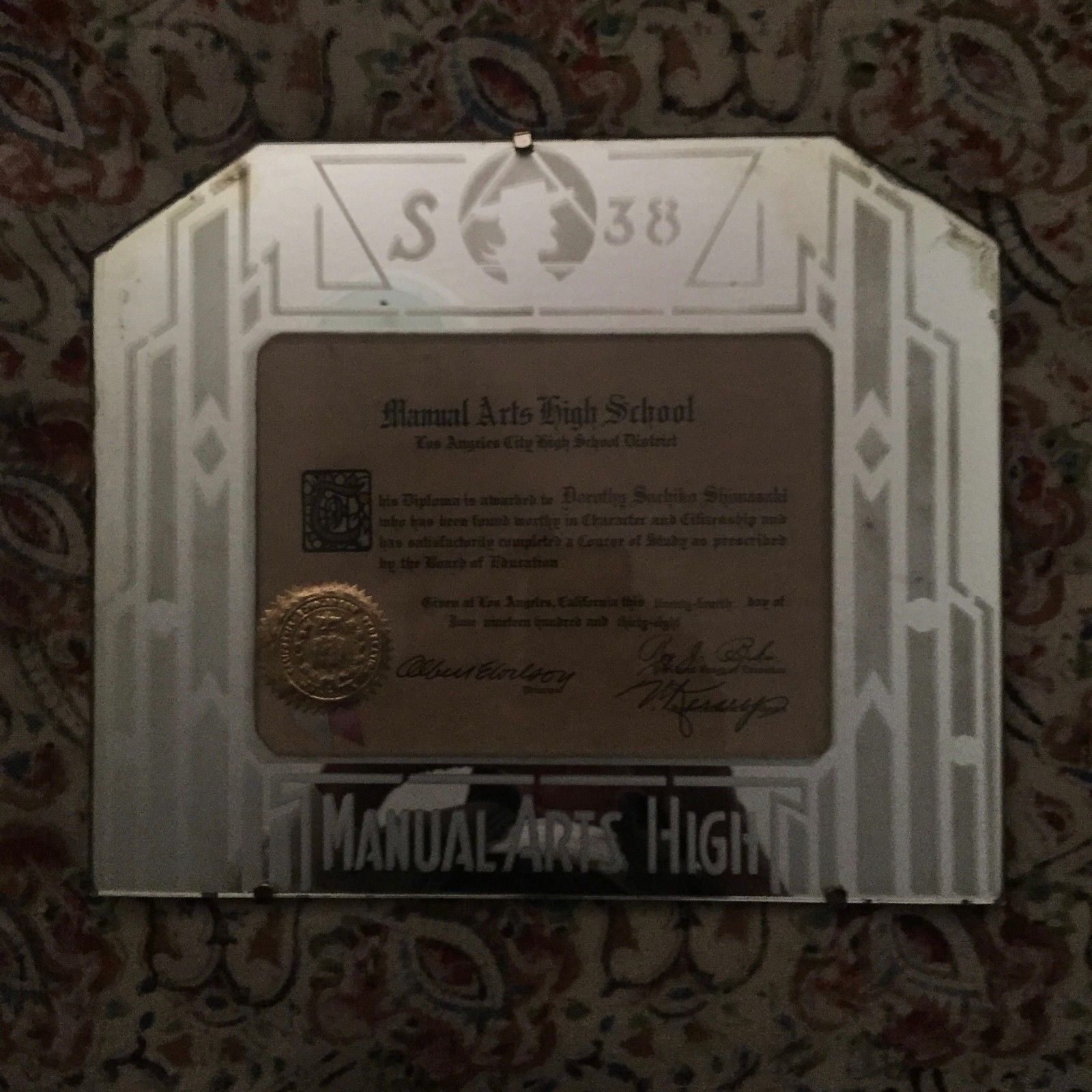 Vintage MIRRORED DIPLOMA FRAME Industrial Art Deco 1938 Nisei
