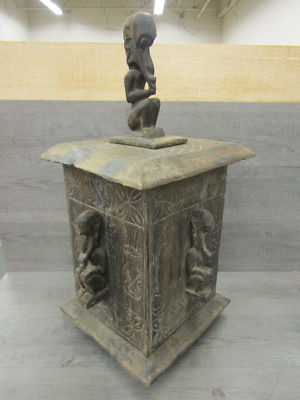 Highly Unique Large African Wooden Box Planter Statues Urn w Lid