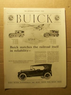 Title (ebay affiliate link): Buick ad, 1921, Uintah Railway, Vernal to Watson, Utah
