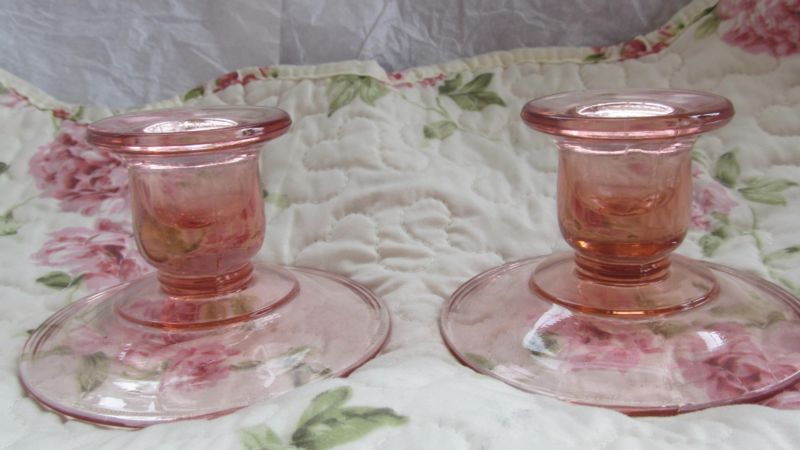 Title (ebay affiliate link): Candle Holders Pink Depression Glass