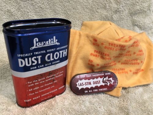 Title (ebay affiliate link): Vintage LAS STIK Automotive DUST CLOTH Original Can And Cloth Excellent NOS