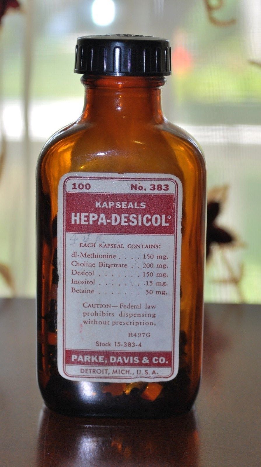 Title (ebay affiliate link): ANTIQUE PHARMACY MEDICINE PARKE DAVIS BOTTLE No. 383 HEPA-DESICOL