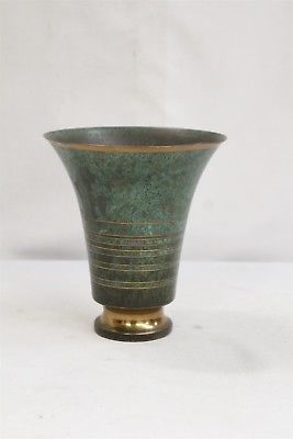 Arts Crafts Carl Sorensen Ringed Green Flared Rim Bronze Vase