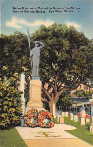 Key West Florida Maine Monument Linen Vintage Postcard JA455456