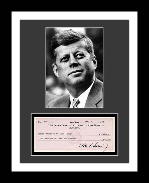 JOHN F KENNEDY Signed Bank Check AUTO PHOTO PRINT DISPLAY READY 2 FRAME
