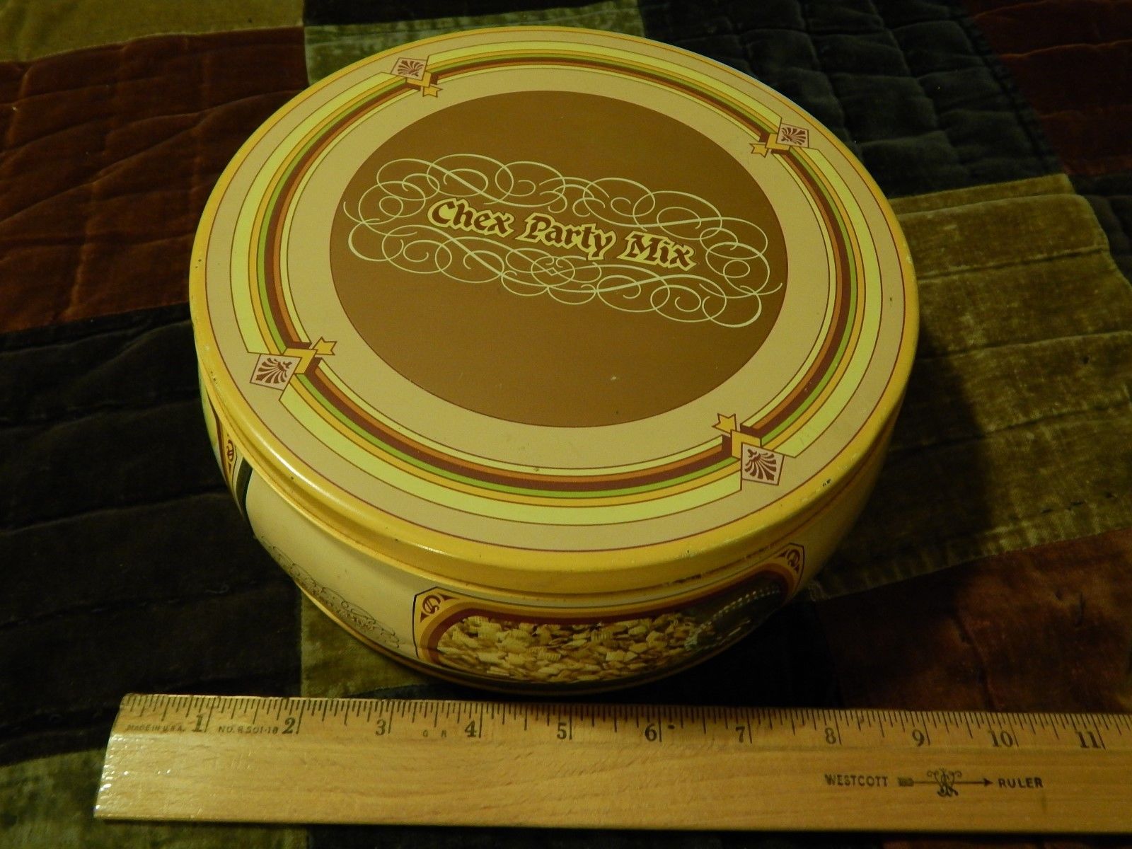 Title (ebay affiliate link): CHEX Party Mix (1980) Round Metal Canister Tin "Four Seasons" w/ Recipe Vtg Ltd