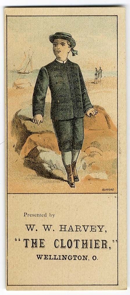 Wellington Ohio HARVEY CLOTHIER Clothes Store Victorian Trade Card 1880''s BOY