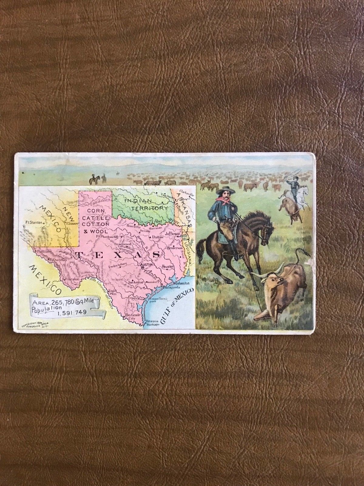 TEXAS History-Map-Arbuckle Bros Coffee-Victorian Trade Card MADE IN 1889