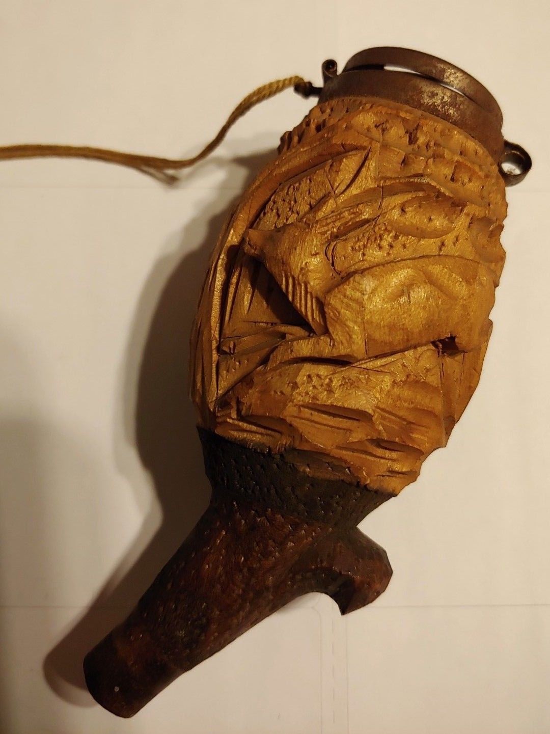 Hand Carved Snuff Pipe Buck and Doe carved in wood