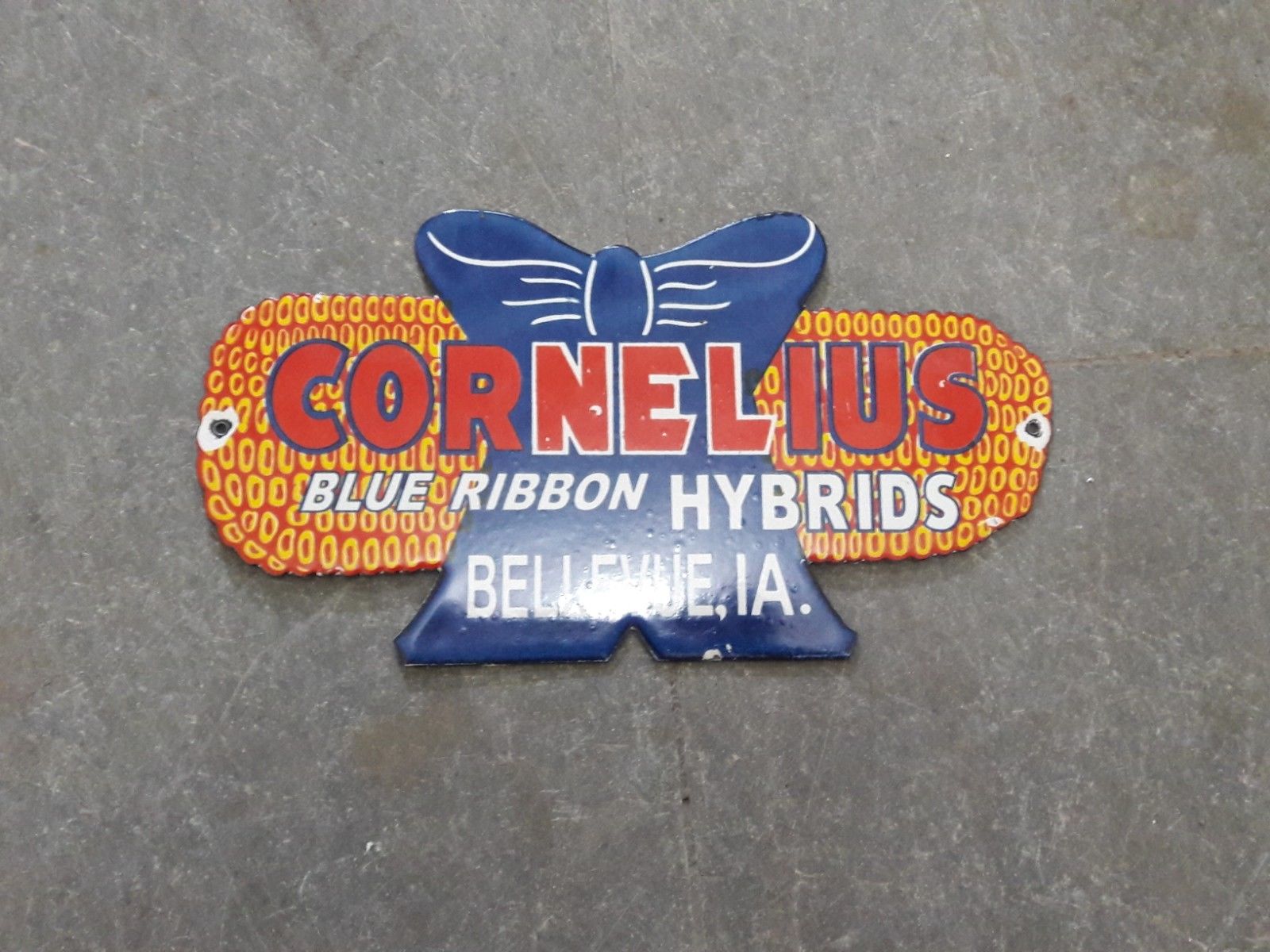 Title (ebay affiliate link): Porcelain Cornelius Blue Ribbon Hybrids Enamel Sign Size 10" x 5" Inches