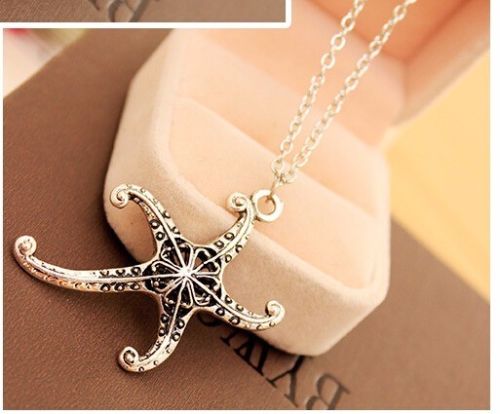 Women Charm Jewelry Antique Silver Starfish Pendants Long Chain Necklace