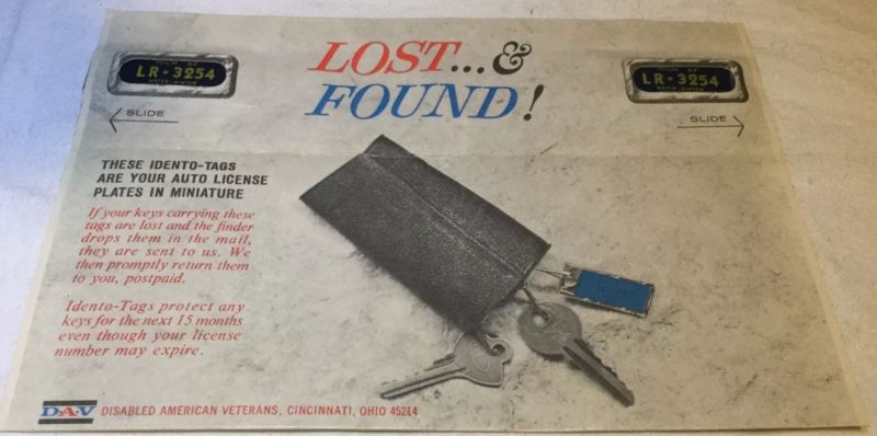 Title (ebay affiliate link): Vintage 1967 D.A.V. lost key IDENTO-TAGS (2) w/reply 1967 Michigan Plate LR-3254