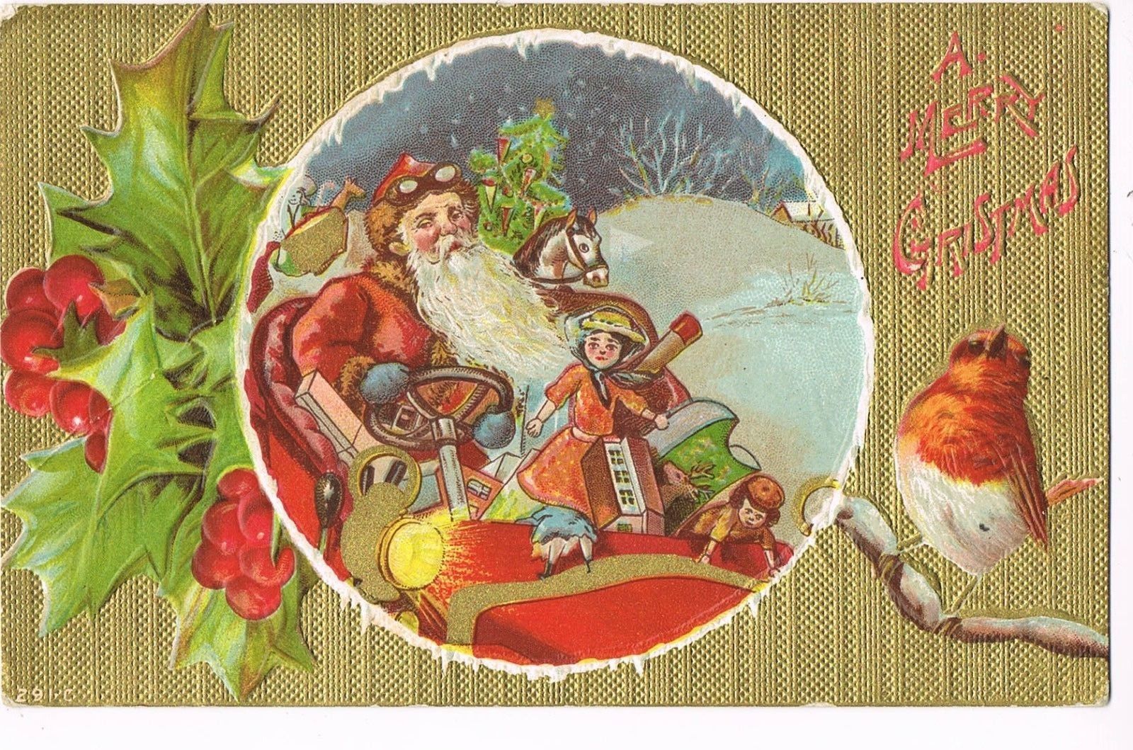 Title (ebay affiliate link): ANTIQUE EMBOSSED CHRISTMAS Postcard SANTA DRIVING AUTO ON SNOWY NIGHT