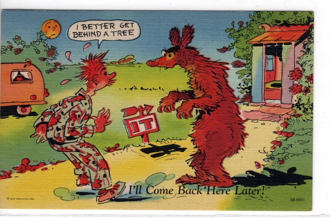 Title (ebay affiliate link): COMIC, RV PARK- BEAR SCARE-RAY WALTERS-LINEN VINTAGE POSTCARD