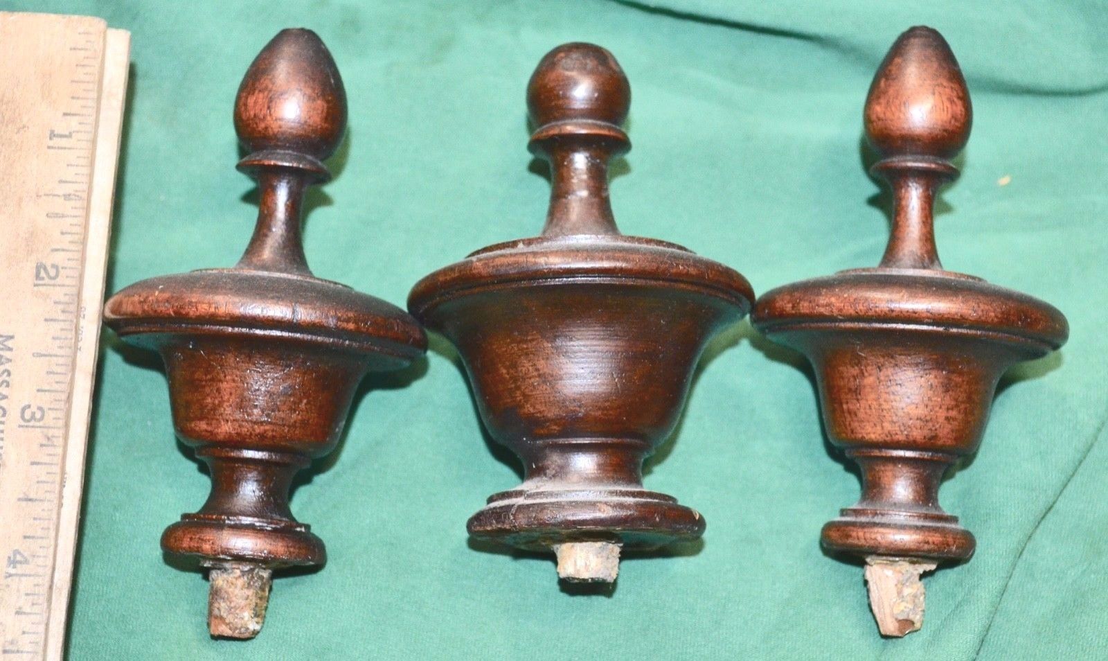 3 Antique Vienna Regulator Clock Mahogany Finials 3 5/8" Tall