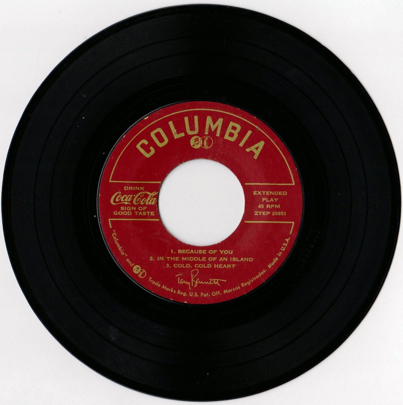 Title (ebay affiliate link): 45 RPM Coca Cola Columbia Record Vintage Tony Bennett 6 songs EP
