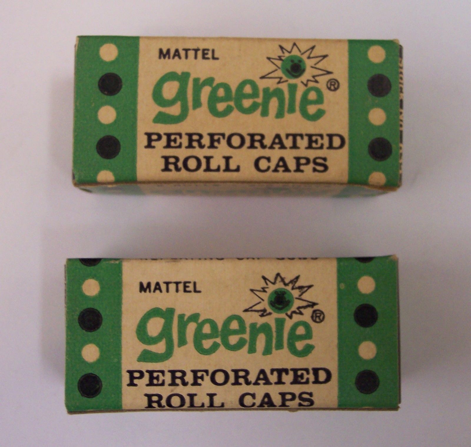 2-VINTAGE MATTEL GREENIE ROLL CAPS BOXES