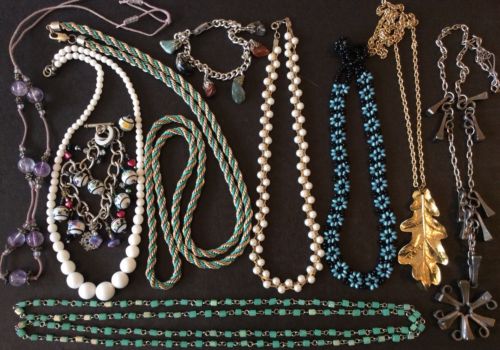 Title (ebay affiliate link): Job Lot Bundle Vintage Milk Glass Bead Daisy Necklaces Agate Charm Bracelets