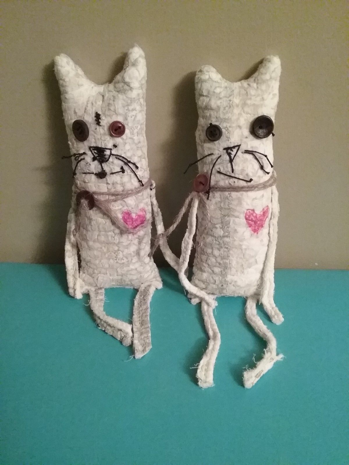 Primitive Cat Dolls Made out of old quilts 13inch set of 2