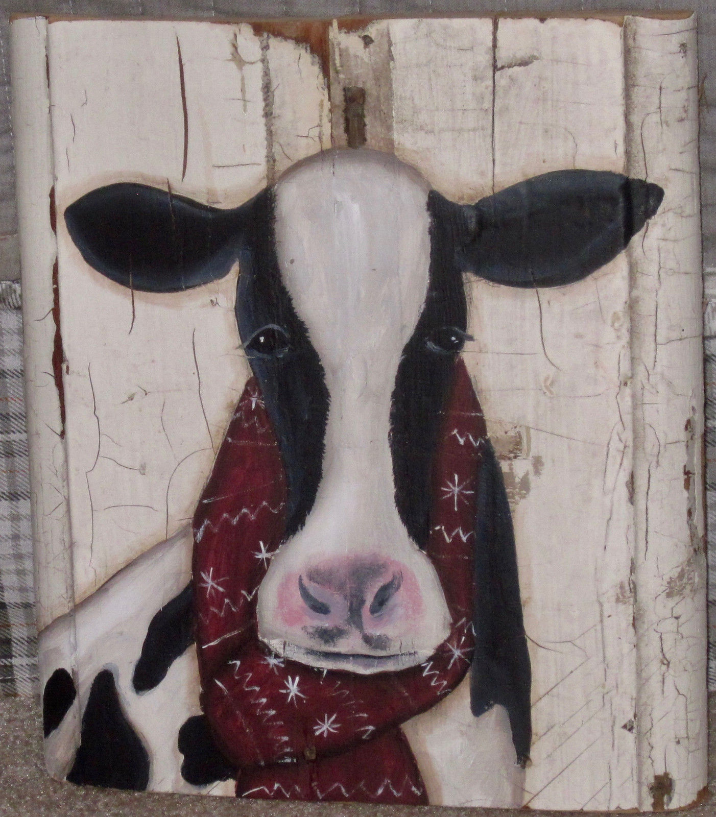 Title (ebay affiliate link): *~*PRIMITIVE*~* HP FOLK ART PRIM COW *~* WINTER *~* OLD RECLAIMED WOOD
