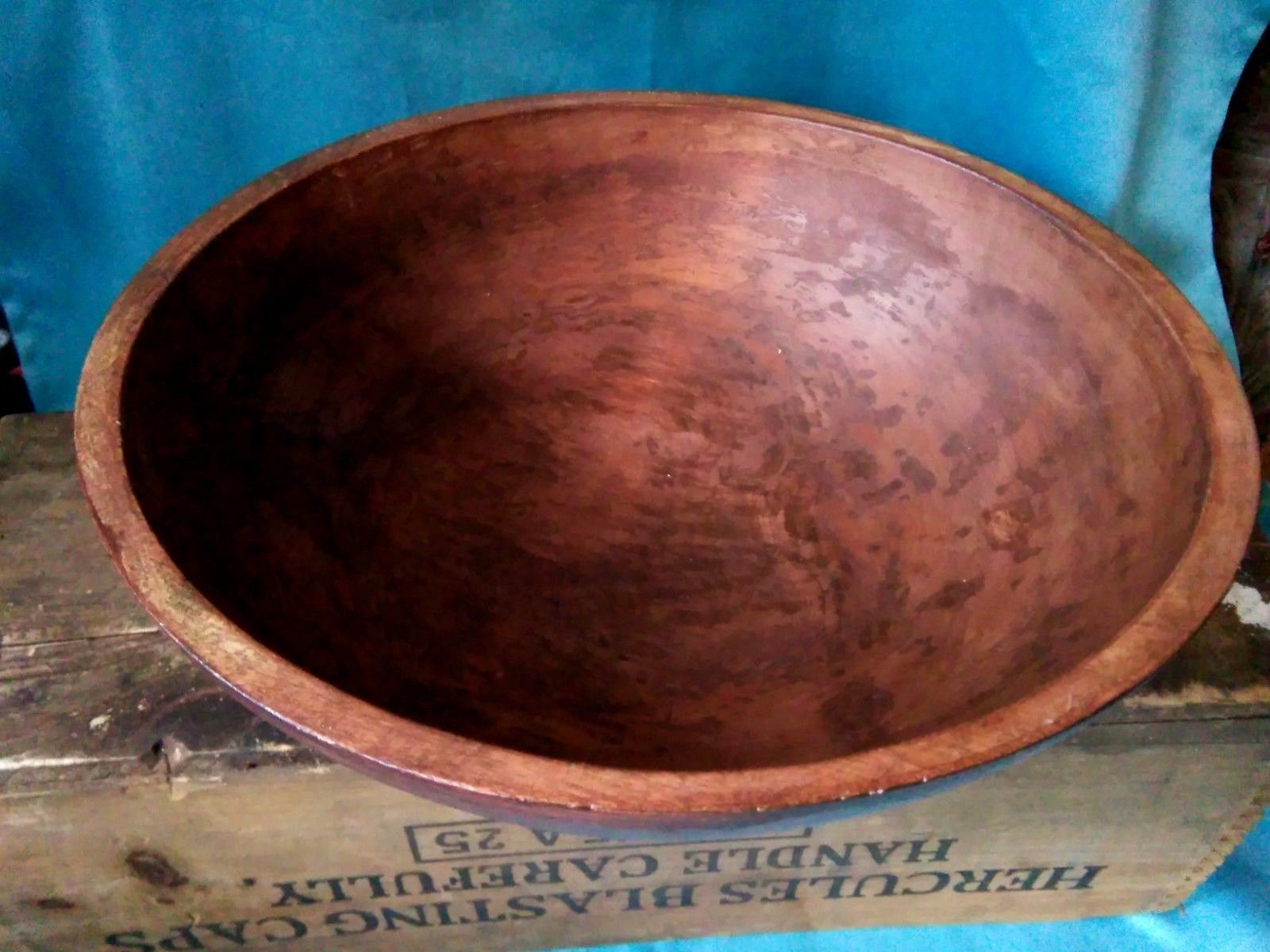 Title (ebay affiliate link): Vintage Primitive Wooden Farmhouse Bread Bowl Signed Original Red Paint