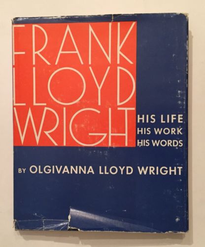 Title (ebay affiliate link): FRANK LLOYD WRIGHT HIS LIFE HIS WORK HIS WORDS 1966 HC DJ 1st BY WIFE OLGIVANNA