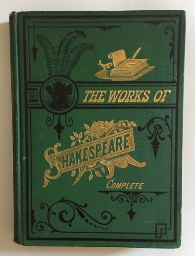 Title (ebay affiliate link): 1880s WORKS OF SHAKESPEARE COMPLETE PLAYS POEMS ILL ORNATE CVR WORLD MFG CO NY