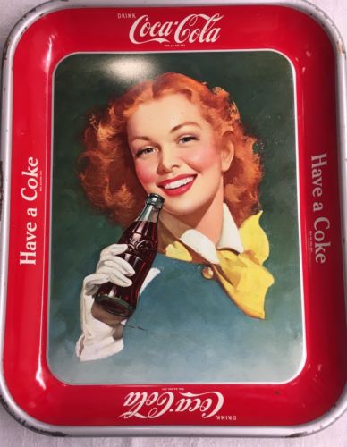Title (ebay affiliate link): Vintage Coca-Cola Original 1950 Metal Tray Red Hair Girl With Yellow Scarf Coke