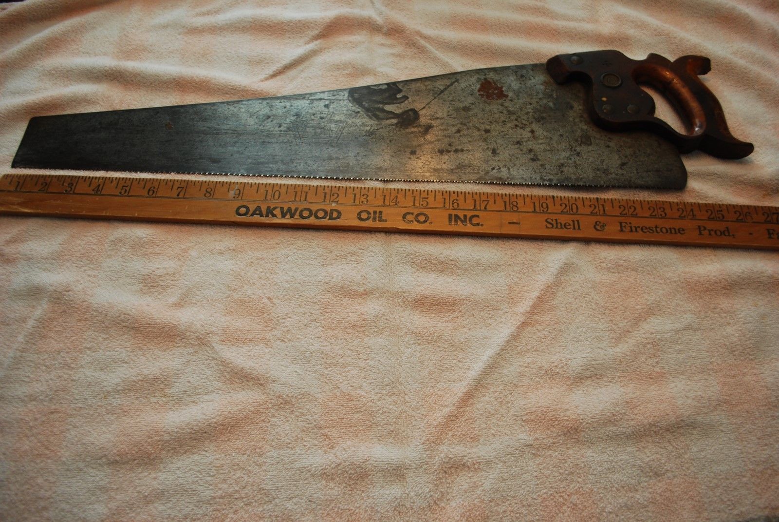 VINTAGE H. DISSTON & SONS PHILADA SAW WITH ETCHING ON BLADE 1840 24 INCH BLADE