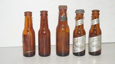 LOT OF 5 Vintage Beer Glass Salt & Pepper Shaker Miniature Bottles
