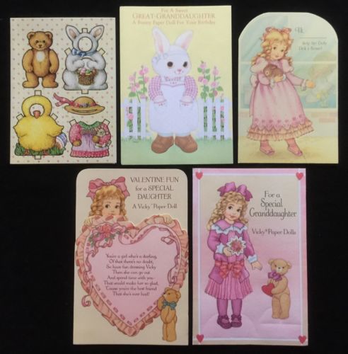 Title (ebay affiliate link): 5 Vintage Unused Paper Doll Punch-Out Birthday~Valentine~Easter Greeting Cards