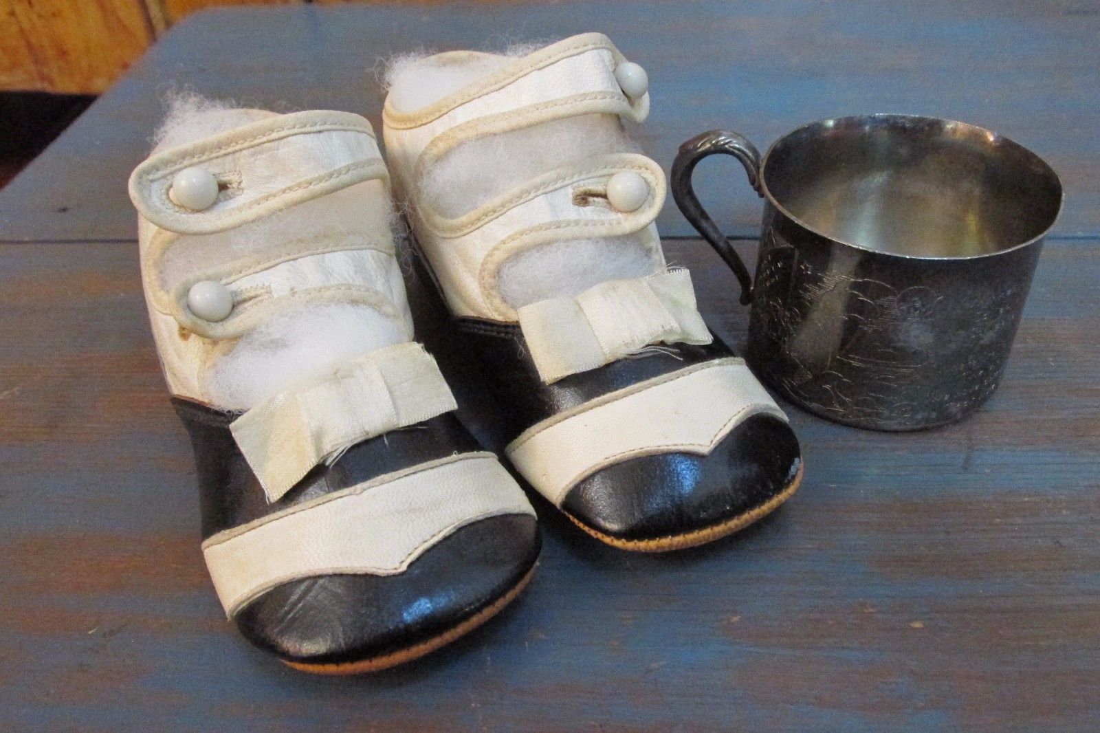 Title (ebay affiliate link): Child''s Antique Victorian Baby Shoes, Baby Cup