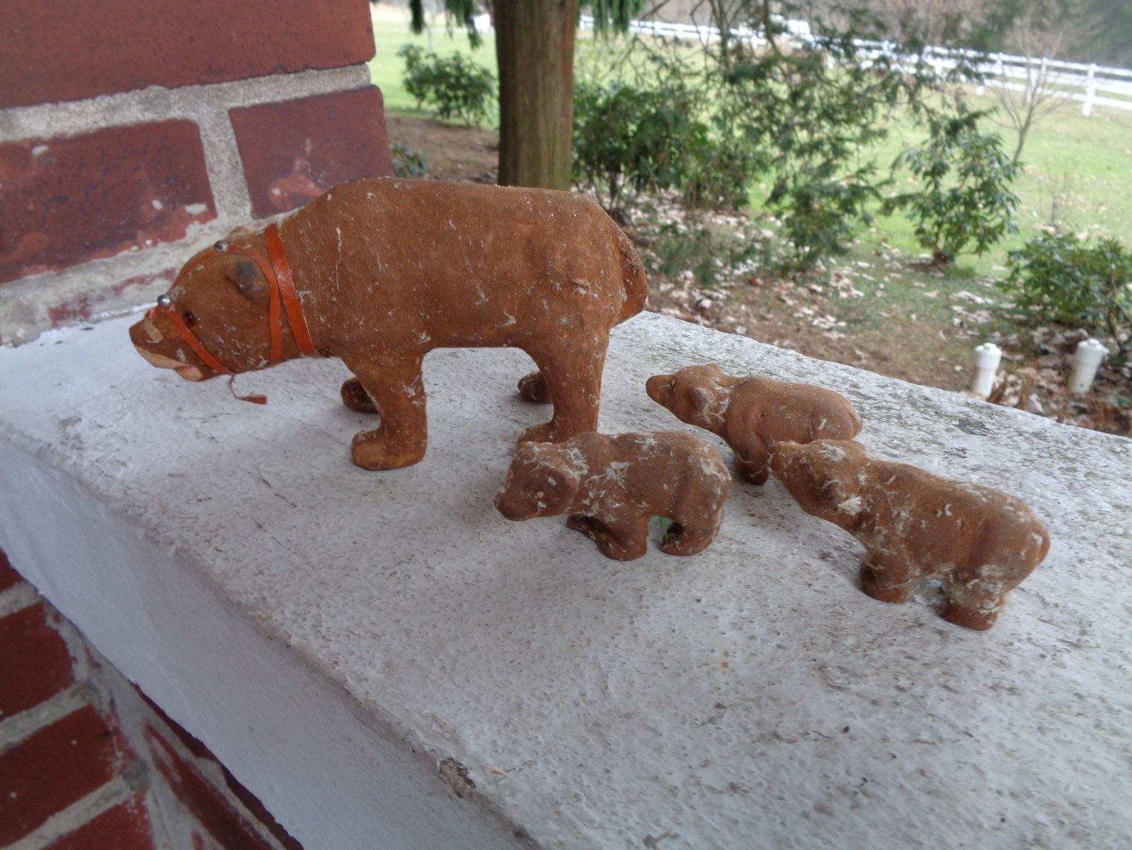 Title (ebay affiliate link): VINTAGE LOT OF 4 GERMAN COMPOSITION CHRISTMAS PUTZ BEAR FAMILY DECORATION DECOR