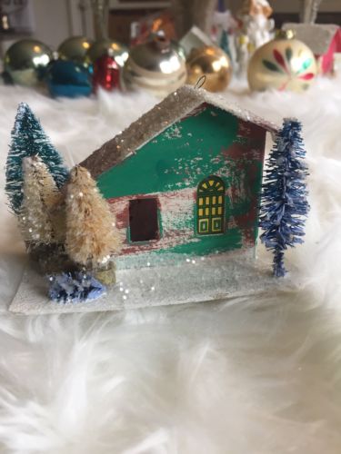Title (ebay affiliate link): Log Cabin Bottlebrush ANTIQUE VINTAGE JAPAN PUTZ House Christmas Sweet