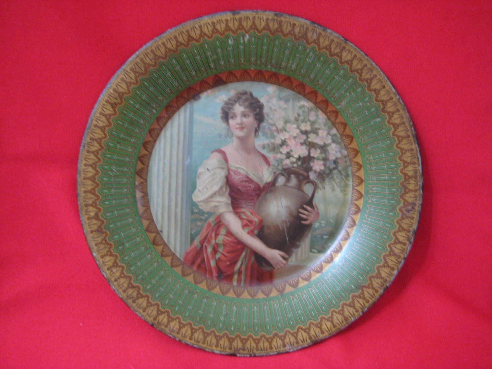 Title (ebay affiliate link): Royal SAXONY Style Metal Plate Brewing Portrait Lady TRAY Advertising O Store Mo