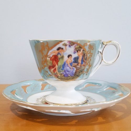 Title (ebay affiliate link): Royal Halsey Very Fine China Teacup 6" Saucer Angel Painting Cutout Gold Leaf