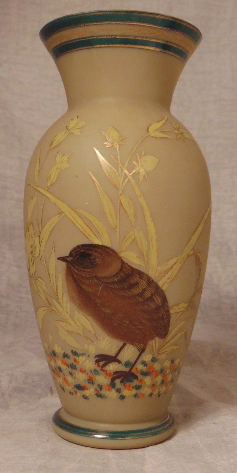 ANTIQUE VICTORIAN BRISTOL GLASS HAND PAINTED VASE 9 3/4"