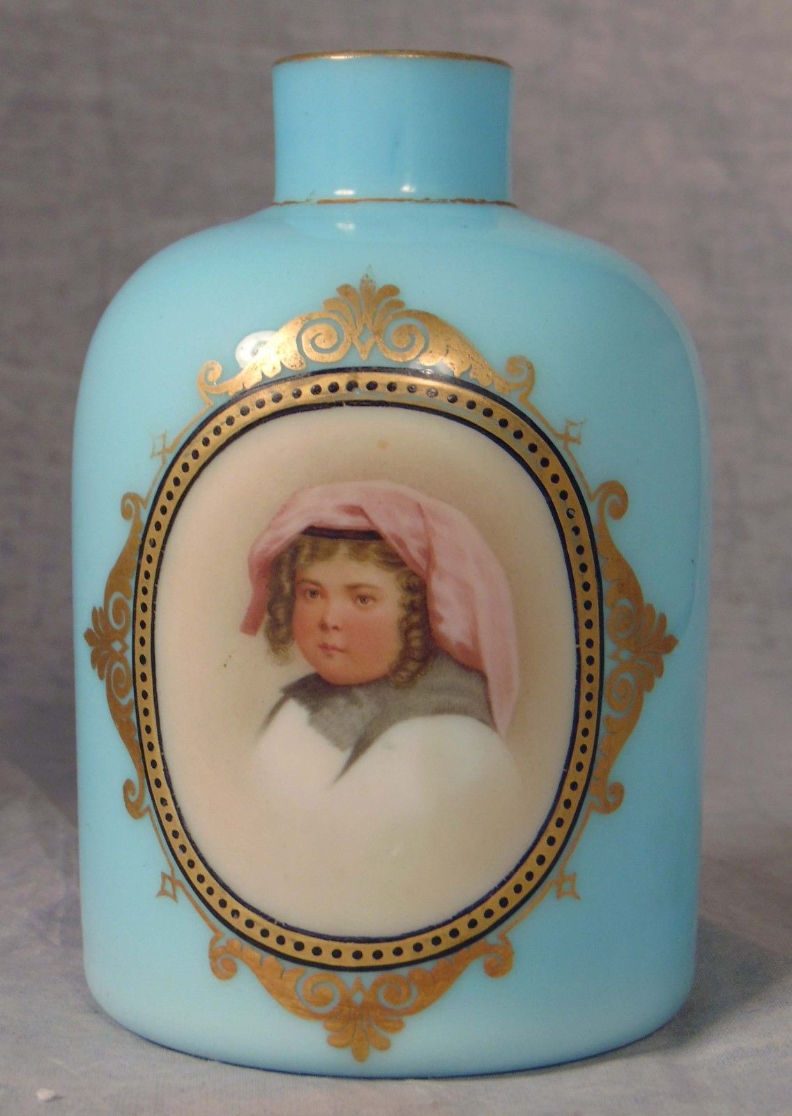 19th C Victorian Mint Green Opalescent Art Glass Portrait Bottle