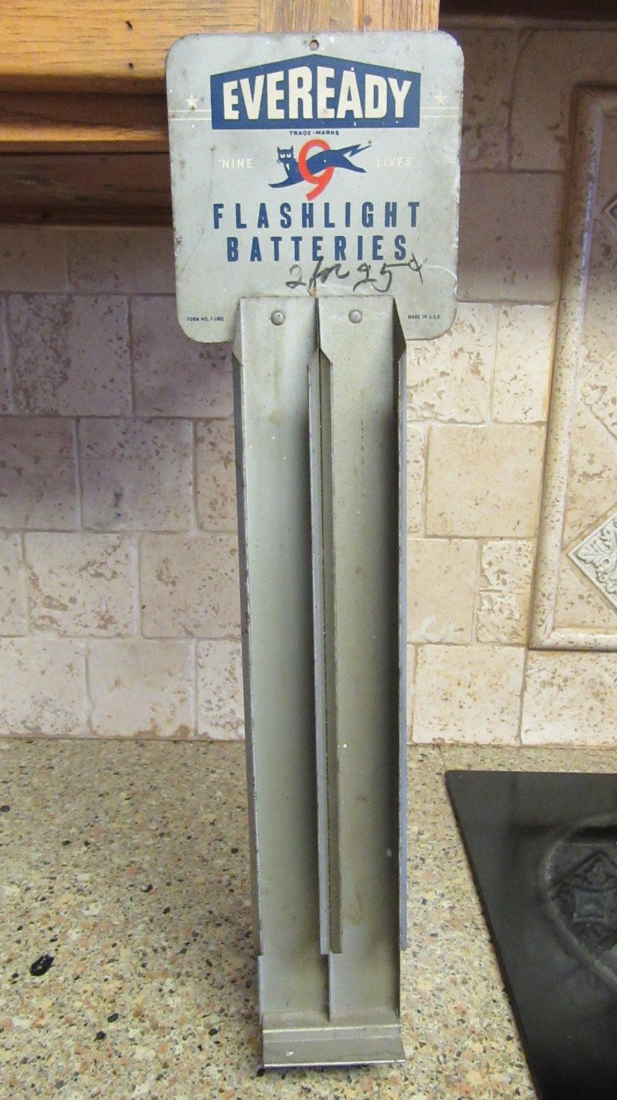 Title (ebay affiliate link): Vintage Eveready Flashligh Batteries Metal Display Nine Lives