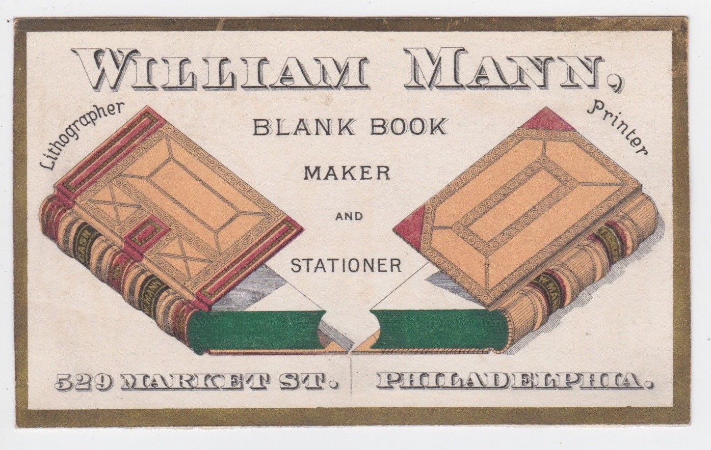 William Mann. Blank Book Maker And Stationer c.1880 Victorian Trade Card