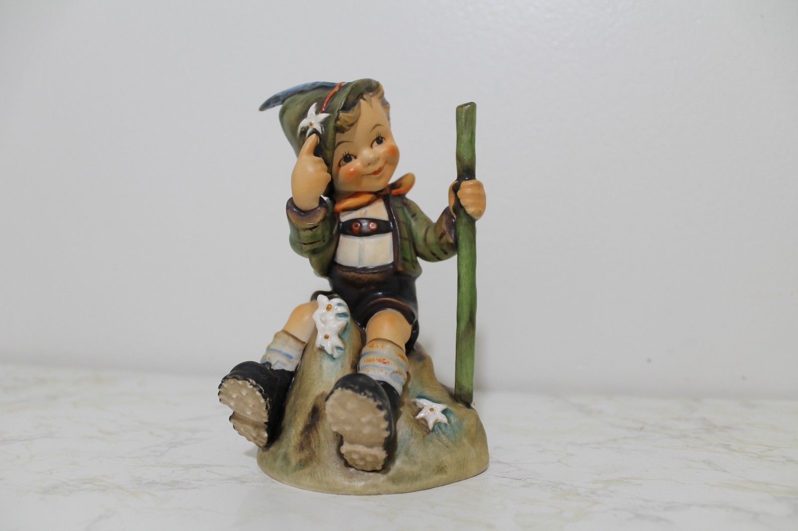 Title (ebay affiliate link): Vintage 1955 Goebel Hummel - 315 Little Boy Mountaineer Sitting Walking Stick