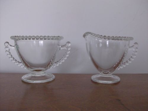 Title (ebay affiliate link): Depression Glass Sugar Bowl & Creamer with Beaded Edge & Handle